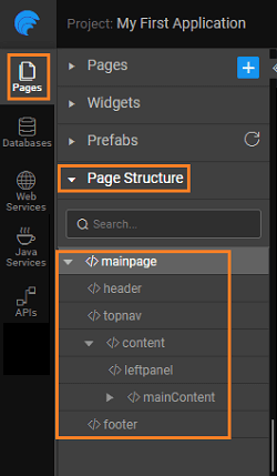 Similarly for Mobile apps, each page can be designed by selecting an appropriate layout and arranging widgets in it. For more information, see Hybrid Mobile Page Layout.
