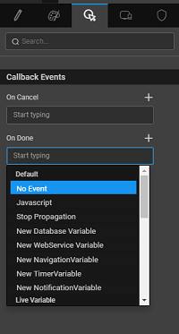 • On Next: This is a callback which fires when the next step button is clicked by the user in a step. When the event fires the wizard scope and step scope will be passed as arguments to On Next callback. If you plan to invoke a JavaScript function when the event occurs, you will be able to have access to these scopes and access the widgets with respect to wizard scope and access the properties with respect to the steps. This can be used to do some updates to a field based on the user’s response in the step and the next step can show the result of the updates made. For example, once the user confirms the order, the order status field in the orders table can be set to Confirmed and it can take the user to payment step.