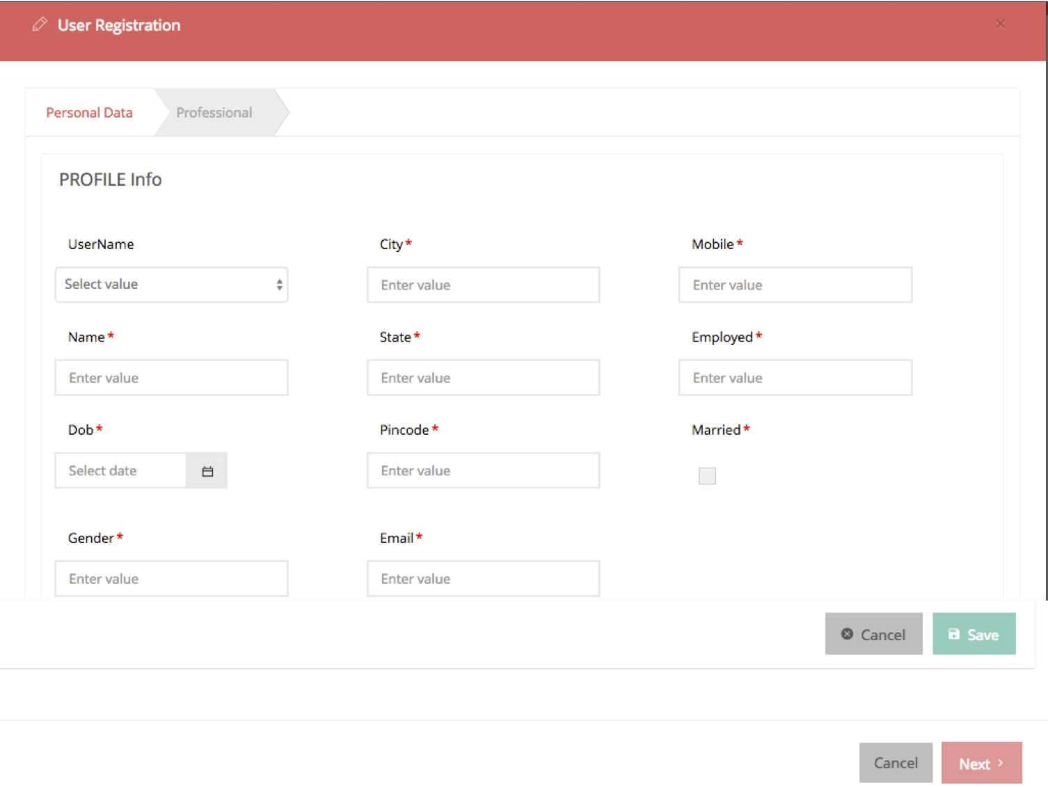 • Enter the Personal Details and click on NEXT to enter Professional Data