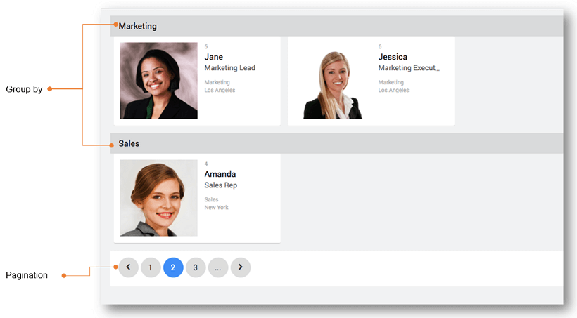 Cards data can be obtained from various data sources like database, queries or web services through variables. Cards templates have a picture and content widgets which can be bound to the fields from the data source. Few of these templates have provision to trigger events via default action buttons.