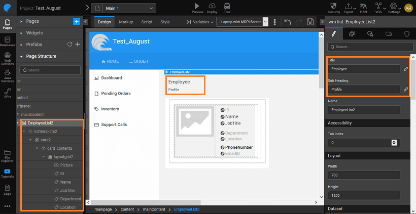 To bind the Cards to your back-end services data, drag and drop the Cards Widget onto the canvas.