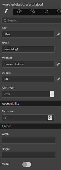 Dialog widget in your project can be accessed by associating the open and close properties of the dialog with an event of any other widget. The dialog can be accessed through scripting by adding DialogService to the page controller and adding the code for open and close as shown below, here we are displaying an alert dialog on click of a button: Click event of the button should trigger the following JavaScript code: