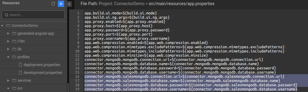 Add all profile properties in the above format. Such as adding new instance “salesmongodb” properties in the following screen