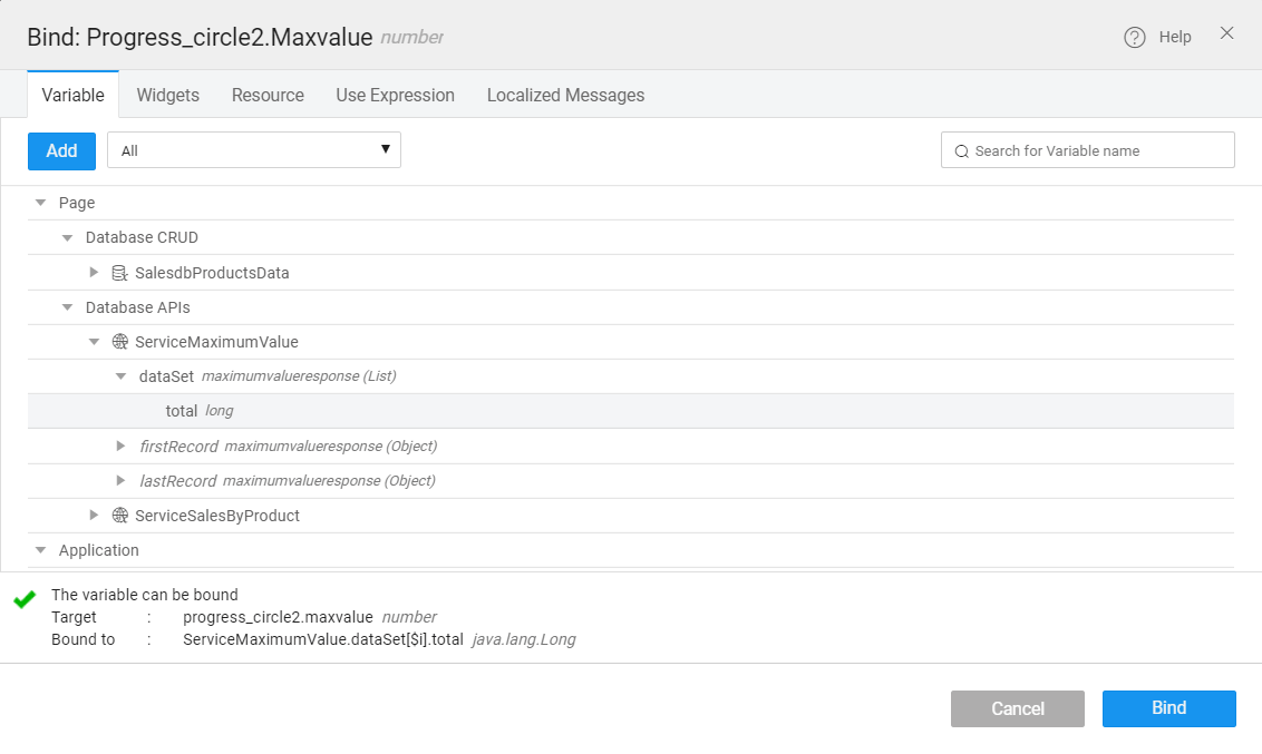 • Click bind for the Default value in the properties.