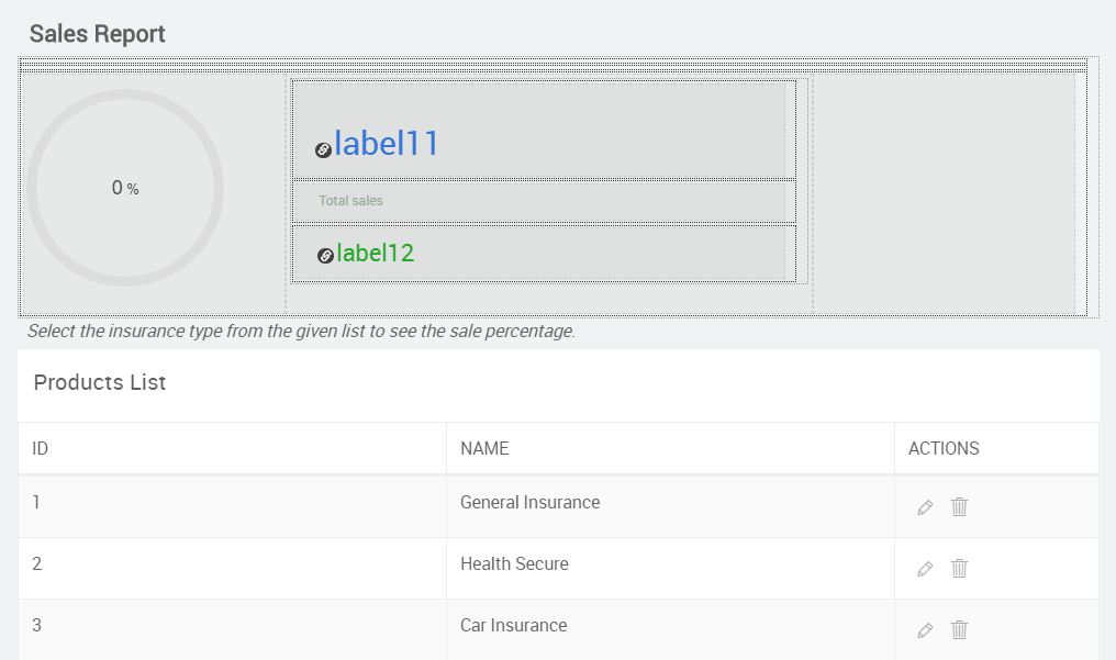 • Design the page to contain the progress circle widget and a data table as shown in the image below: