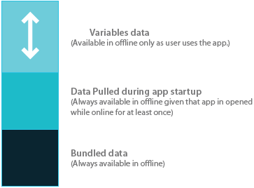1. Data bundled along with the installer (apk or ipa)is always available for offline. This will be helpful when a huge amount of data is needed in offline all the time. There are two settings available in this case: