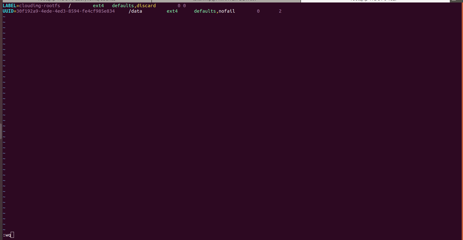 UUID=<block-device_1-UUID> /wm-data ext4 defaults ,nofail 0 2