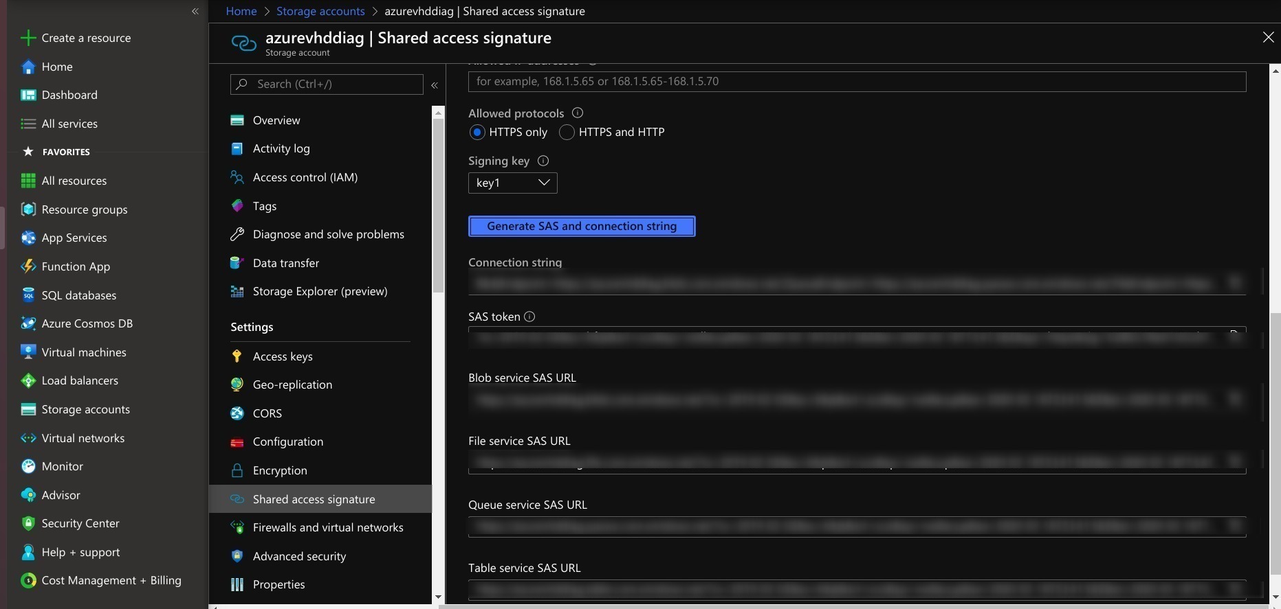 - Generate SAS in a storage account.