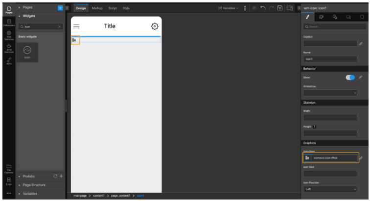 1. Open the Select Icon dialog to view the uploaded icons family.