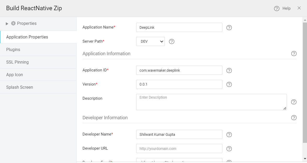 Create app.json file and add the following fields to your app.json file and upload that app.json file to src/main/webapp in WaveMaker application.